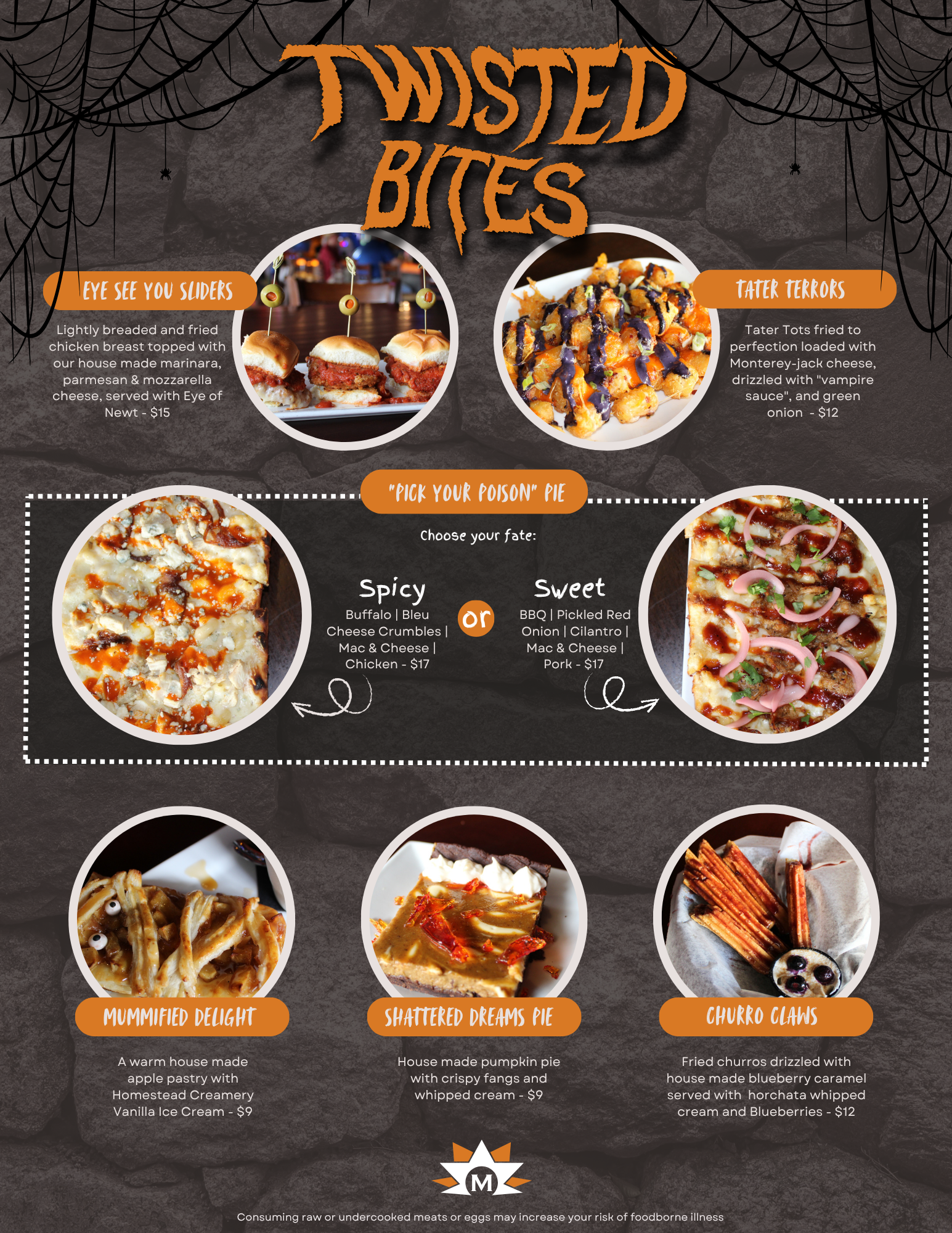 Spooky sips, eerie eats, and frightfully fun nights await! Exclusive items ONLY AVAILABLE UPSTAIRS!